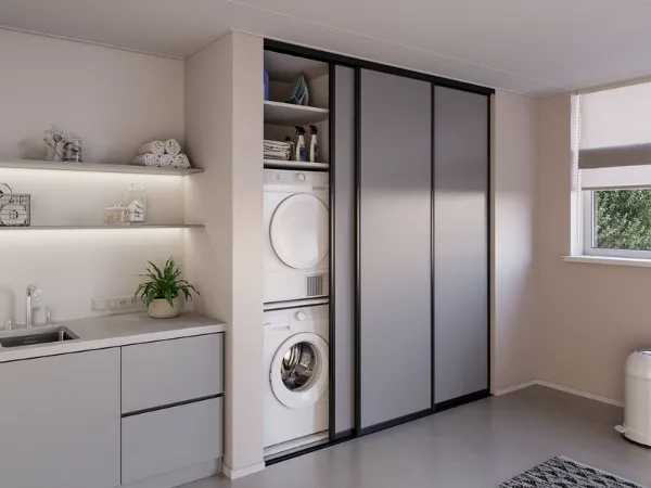 Zeg maar dag tegen bukken: met een wasmachinekast staan je apparaten op de juiste hoogte. Je benut elke centimeter opbergruimte en houdt alles netjes achter gesloten deuren. Kom langs in één van onze winkels en we ontwerpen graag jouw ideale wasmachine kast.